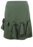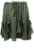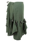Possui cintura com ajuste em amarração e detalhes decorativos.