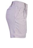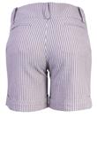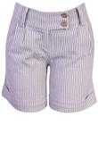 Possui fechamento botão, zíper, bolsos e fita para amarração.