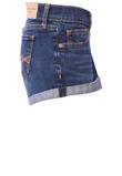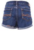 Confeccionado em jeans com elastano, possui barra dobrada, bolsos dianteiros e traseiros e fechamento por zíper e botão.Cintura: 74cm/ Quadril: 84cm/ Gancho: 18cm/ Comprimento: 24cm
