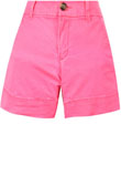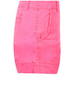 Fechamento em botão e zíper. Possui bolsos laterais e atrás.