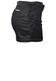 Possui amarração lateral e fechamento por colchete e zíper. Acabamento com brilho e resinado. Cintura: 80cm/ Quadril: 94cm/ Gancho: 26cm/ Comprimento: 27cm