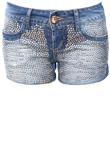 Possui aplicações frontal com strass, quatro bolsos e fechamento por zíper e botão.Cintura: 80cm/ Quadril: 94cm/ Gancho: 23cm/ Comprimento: 27cm