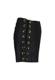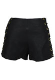 Fechamento por zíper e transpasses laterais Cintura: 68cm/ Quadril: 76cm/ Gancho: 28cm/ Comprimento: 33
