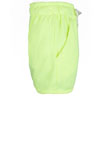 Cós elástico, fecho em amarração, possui bolso, tecido com acabamento em botonê e moletom não flanelado.