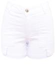 Confeccinado em sarja com elastano, possui bolsos dianteiros e traseiros e fechamento por zíper e botão.Cintura: 76cm/ Quadril: 98cm/ Gancho: 27cm/ Comprimento: 39cm