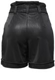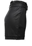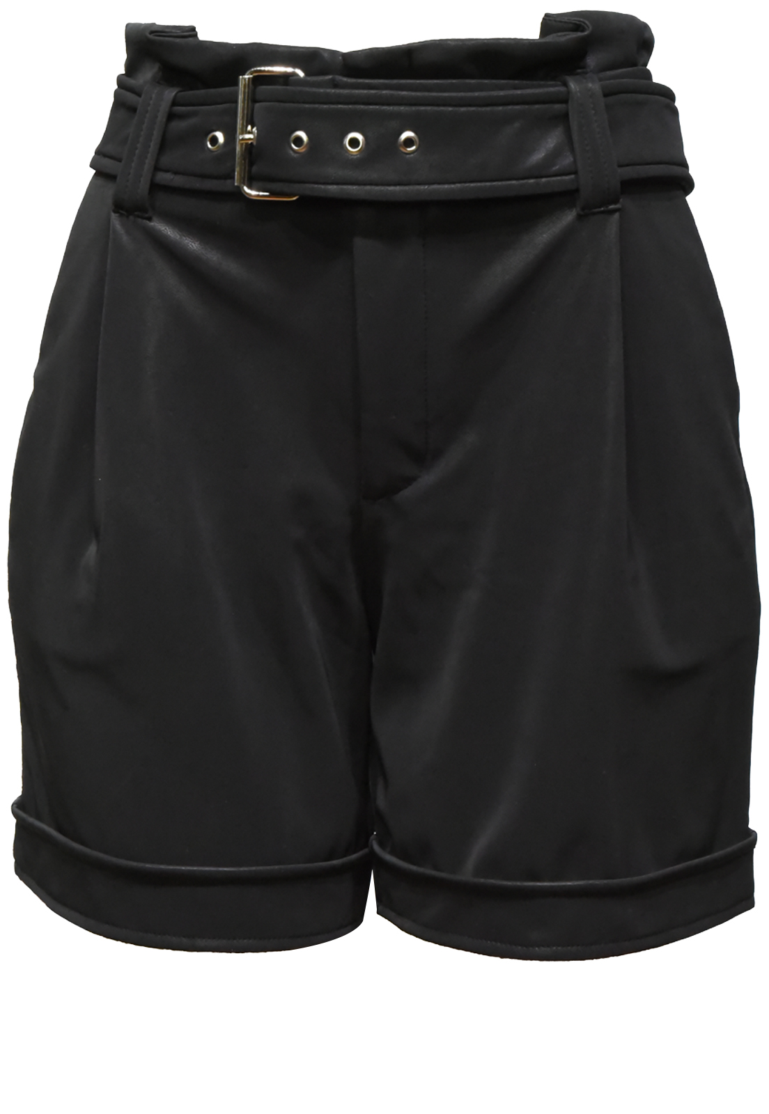 Possui acabamento resinado, elastano, bolsos e cinto opcional.Cintura: 64cm/ Quadril: 76cm/ Gancho: 37cm/ Comprimento: 44cm