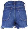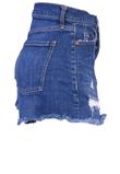 Possui fechamento em botões e desfiados no bolso frontal e nas barras.