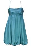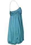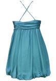 Vestido balonê forrado com detalhe drapeado no busto, possui alças ajustáveis que cruzam nas costas e fechamento lateral em zíper.