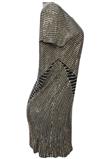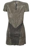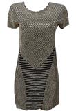 Possui gola redonda, fecho posterior em zíper e aplicações de hotfix. Ombro: 10cm/ Manga: 14cm/ Busto:92cm/ Comprimento: 84cm
