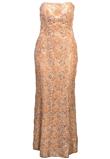 Vestido Espaço Fashion Paetê Marrom/Dourado
