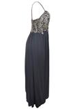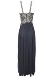 Possui bojo, aplicação de pedrarias e fechamento posterior por zíper.Ombro: 3cm/ Busto: 78cm/ Cintura: 78cm/ Comprimento: 150cm