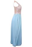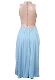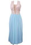 Possui decote profundo, parte de cima em tule e renda e aplique de pérolas