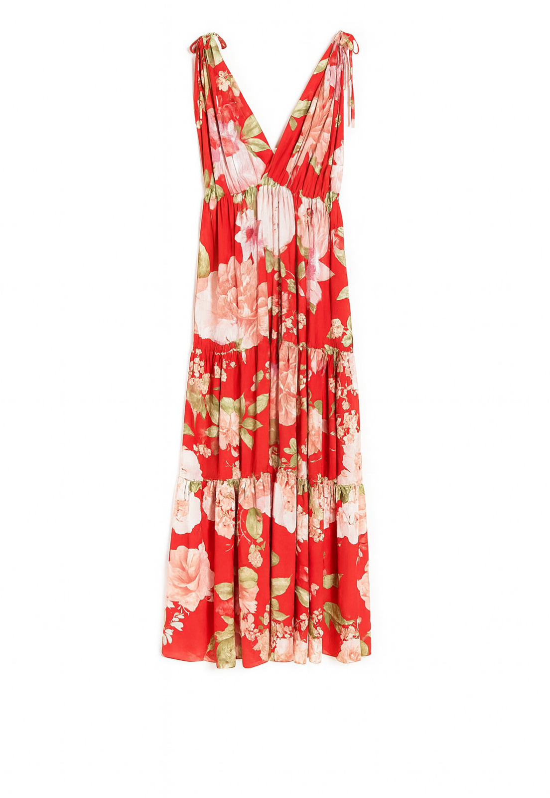 Vestido Amaro Florido Vermelho/Verde/Rosa