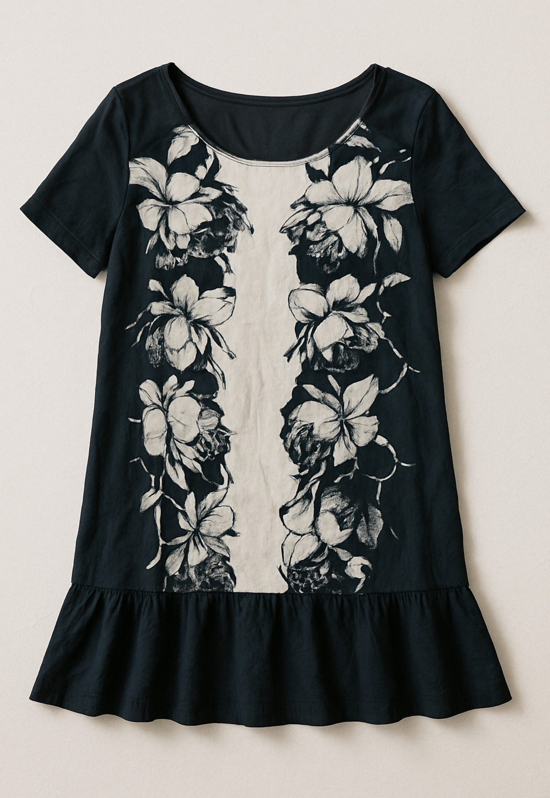 Possui babado na barra.
