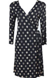 Possui ajuste em amarração na cintura e estampa de poás.