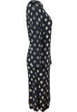 Possui ajuste em amarração na cintura e estampa de poás.Ombro: 9cm/ Ombro a ombro: 42cm/ Manga: 55cm/ Busto: 96cm/ Comprimento: 92cm
