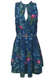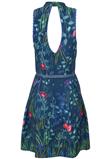 Com costas abertas, possui fechamento posterior por zíper e botão e acompanha cinto com fivela de flor.Ombro: 5cm/ Busto: 84cm/ Cintura: 70cm/ Quadril: 120cm/ Comprimento (total): 90cm