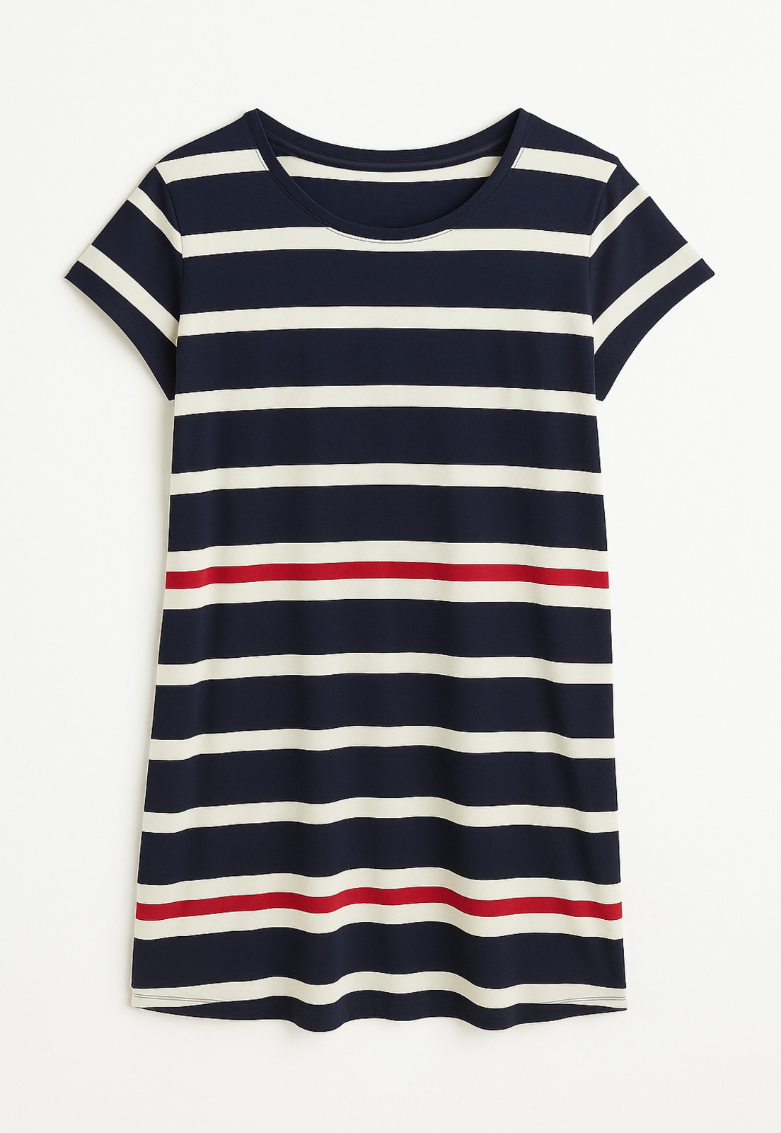 Vestido Blu Listrado Azul, Branco e Vermelho