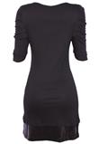 Possui manga princesa e barra com paetês. Ombro: 6cm/ Manga: 34cm/ Busto: 74cm/ Cintura: 76cm/ Comprimento: 84cm.