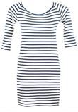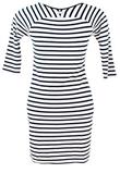 Possui decote redondo e padronagem listrada.Manga: 45cm/ Busto: 95cm/ Comprimento: 88cm
