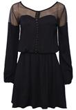 Possui detalhe em tela, forro, decote redondo, elástico na cintura e fechamento por botão frontal. Ombro: 7cm/ Manga: 58cm/ Busto: 96cm/ Comprimento: 91cm
