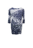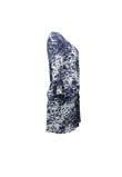 Possui decote canoa, estampa abstrata e ajuste em amarração na cintura. Ombro: 10cm/ Manga: 47cm/ Busto: 110cm/ Comprimento: 100cm
