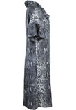 Possui ajuste em amarração na gola. Ombro: 20cm/ Manga: 9cm/ Busto: 100cm/ Comprimento: 92cm