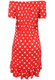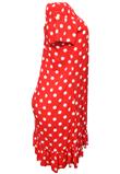 Possui decote ombro a ombro com franzido, estampa de poás e babados na barra.Manga: 11cm/ Busto: 98cm/ Comprimento: 84cm