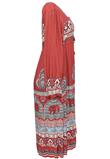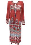 Possui mangas longas e aplicação de miçangas e tira para amarração no decote.Ombro: 8cm/ Manga: 63cm/ Busto: 82cm/ Cintura: 94cm/ Quadril: 140cm/ Comprimento: 123cm