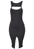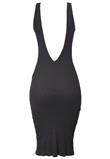 Possui decote nas costas e fenda.