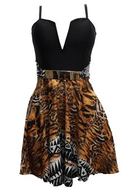 Vestido Miss e Misses Animal Print Preto/Amarelo