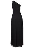 Decote um ombro só, detalhe em pedraria no ombro e acabamento em tule.