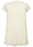 Em renda, com forro e detalhes em guipir.Ombro: 8cm/ Manga: 16cm/ Busto: 100cm/ Comprimento: 83cm