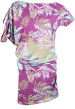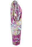 Possui detalhe franzido no ombro, drapeado na cintura e mangas assimétricas.
