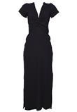Possui torção no decote. Ombro: 12cm/ Manga: 15cm/ Busto: 102cm/ Comprimento: 149cm