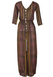 Vestido Longo Areia e Mel Estampado Bordô/Mostarda