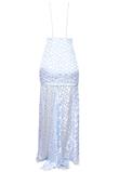 Fechamento por zíper posterior. Ombro: 1cm/ Busto: 80cm/ Comprimento: 161cm