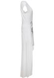 Ombro: 8cm/ Manga: 12cm/ Busto: 88cm/ Cintura: 80cm/ Quadril: 104cm/ Comprimento (total): 142cm
