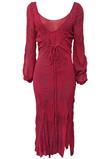 Possui decote redondo e detalhe frontal em amarração.Ombro: 4cm/ Manga: 69cm/ Busto: 96cm/ Comprimento: 146cm