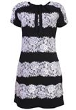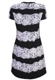 Vestido Espaço Fashion Manga Curta Rosa/Preto