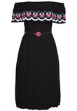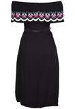 Possui fechamento posterior por zíper. Vestido com forro. Acompanha cinto. Decote ombro a ombro. Ombro: 18cm/ Busto: 86cm/ Comprimento: 107cm