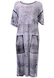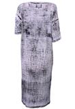 Possui estampa azul marinho, caimento mais soltinho