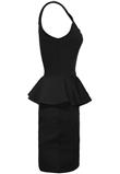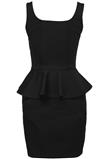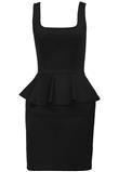Com decote quadrado e mangas regata, possui sobreposição em babado na altura da cintura e fecho lateral em zíper.