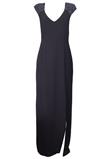 Possui detalhe em brilho nos ombros e fenda. Acompanha echarpe.