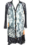 Possui fecho em botões e recortes em renda. Ombro: 12cm/ Manga: 54cm/ Busto: 100cm/ Comprimento: 95cm