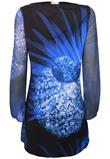 Possui detalhe manga tela, decote redondo e tecido estampado.Ombro: 5cm/ Manga: 65cm/ Busto: 96cm/ Comprimento: 88cm