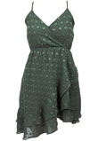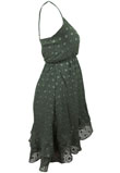 Possui alças reguláveis, ajuste em elástico na cintura, forro, barra assimétrica e padronagem geométrica.