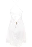 Possui forro, bojo, costas abertas com tiras trançadas ajustáveis e fechamento posterior por zíper.Busto: 66cm/ Cintura: 72cm/ Quadril: 102cm/ Comprimento: 76cm