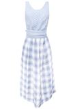 Vestido xadrez em linho. Possui decote V, fechamento por zíper lateral e faixa para amarração na cintura. Ombro: 3cm/ Busto: 94cm/ Comprimento: 130cm