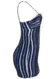 Vestido Schutz Drapeado Azul/Branco